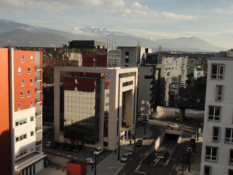 Album photo du chantier de lavage de vitres sur cordes sur le bâtiment du Pulsar sur le site d' Europole à Grenoble - Sous traitance pour la S.A.R.L Prism Color